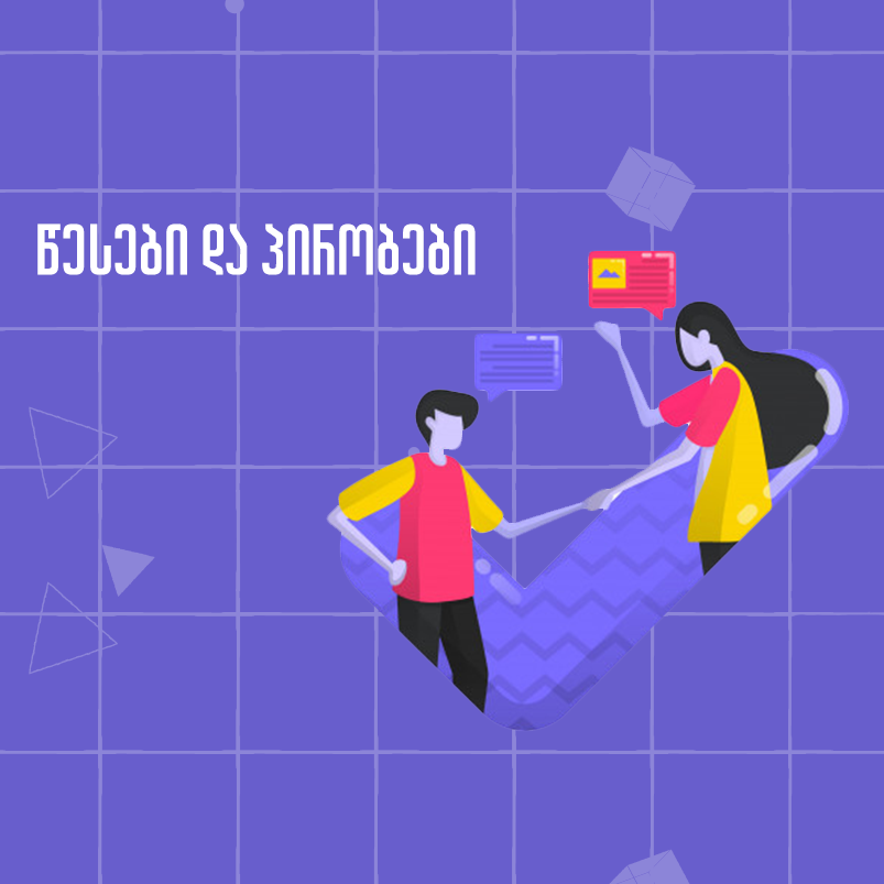 - მონაწილეს ეკრძალება შეხვედრ(ებ)ის ფიზიკური თუ ონლაინ ჩანაწერ(ებ)ის, ასევე სამუშაო/სასწავლო მასალების და სხვა ნებისმიერი მასალის გავრცელება/გადაცემა/გაზიარება, როგორც საჯაროდ, ისე ნებისმიერი პირისთვის;